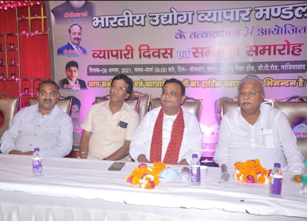 . व्यापारी दिवस के अवसर पर भारतीय उद्योग व्यापार मण्डल की गजियाबाद जिला ब महानगर इकाई ने व्यापारी दिवस व सम्मान समारोह का भव्य आयोजन किया जिसके मुख्य अतिथि व्यापारी कल्याण बोर्ड उत्तर प्रदेश के माननीय अध्यक्ष श्री रवि कांत गर्ग ( राष्ट्रीय अध्यक्ष भारतीय उद्योग व्यापार मण्डल ) रहे तथा विशिष्ट अतिथि के रूप में स्वास्थ राज्य मंत्री श्री अतुल गर्ग, श्री आनंद प्रकाश ( अध्यक्ष बाल भवन भारत सरकार ) ,भाजपा के महानगर अध्यक्ष संजीव शर्मा, महामंत्री पप्पू पहलवान भी उपस्थित थे